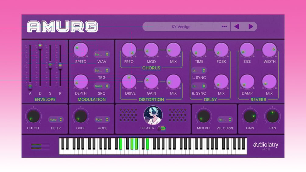 This sample-based ROMpler instrument features 172 presets such as keys, leads, basses, pads, and fx. Each preset is customizable with a set of controls such as ADSR envelope, modulation, filter, reverb, chorus, delay, distortion, etc.